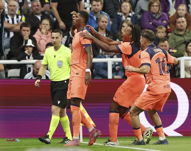 第58分钟,拉什福德接到孔德的传中后潇洒甩头攻门得手,攻破波普镇守的球门。这是他巴萨生涯正式比赛的首粒进球。