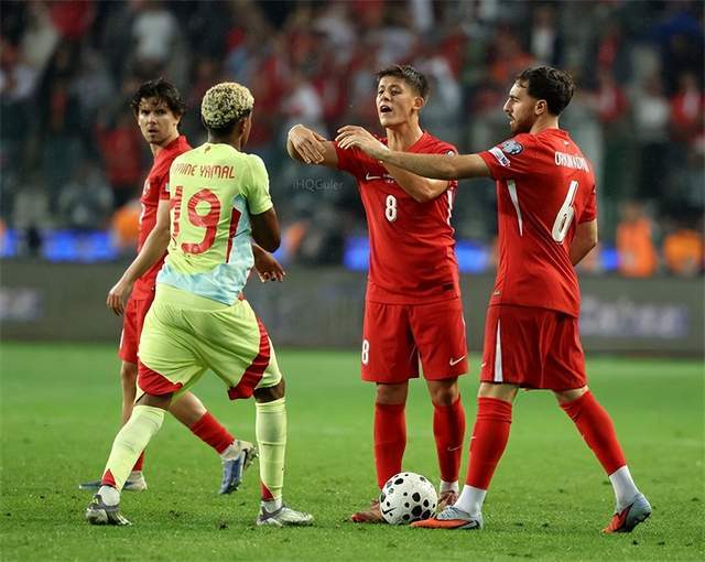 世预赛欧洲区E组焦点战,土耳其主场迎战西班牙。这场比赛打出惨案:西班牙6-0狂胜!20岁的皇马前腰居勒尔,风头完全被佩德里、亚马尔盖过。居勒尔与亚马尔的1次小冲突,也成为球迷热议的话题。