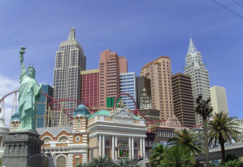 It uses the New York City influence of its name in several ways. Its architecture is meant to evoke the New York City skyline of the 1940s era; the hotel includes several towers configured to resemble New York City towers such as the Empire State Building and the Chrysler Building. In front of the property is a replica of the Statue of Liberty, and replicas of the Soldiers and Sailors Monument, the Whitney Museum of American Art, the Main Immigration Building on Ellis Island, and Grand Central Terminal.
